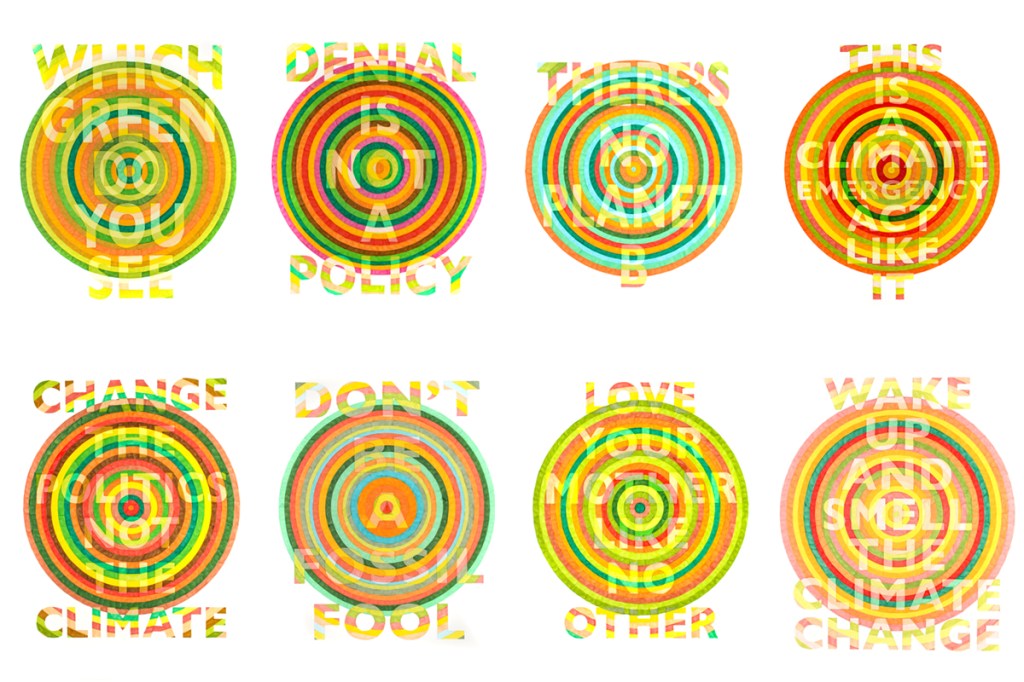 Patterns for Future Living is a DIY space for participatory and collective action, engaging with feminist protest and ecological justice through text and textiles artworks. The exhibition draws inspiration from the works of modernist artist Sonia Delaunay-Terk, who devised a new visual language for the rhythms of daily life by exploring simultaneous colour, pattern, movement and abstraction. Commissioned for the Brisbane Festival, this body of work explores future potentialities of ‘patterns for living’ – one that embraces the interconnectedness of all living things.